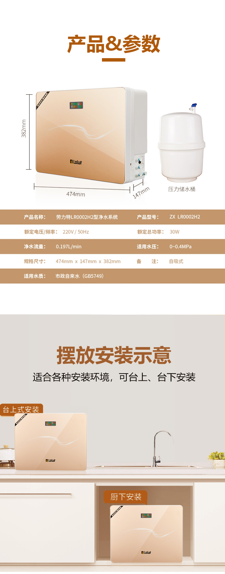 自吸式反渗透净水器·劳力特自吸式反渗透